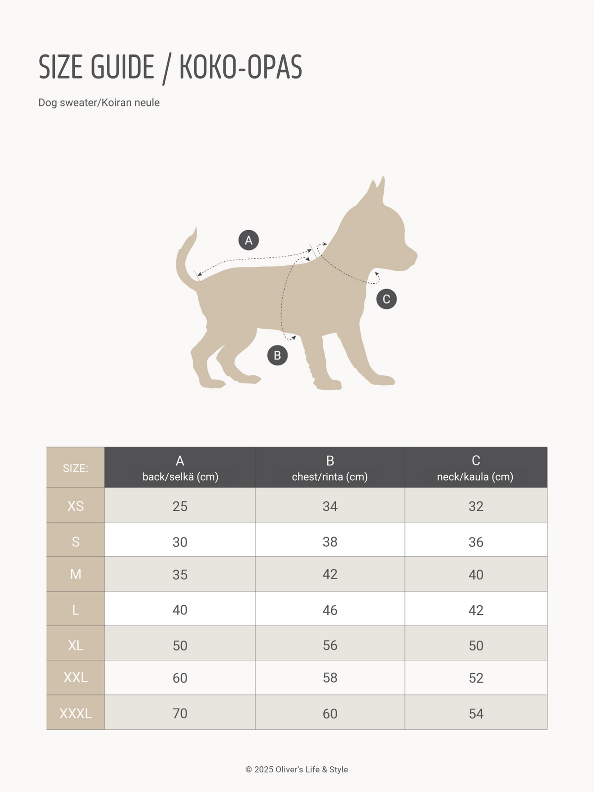 Choosing the right size is essential to ensure your dog’s sweater fits well and feels comfortable. Before placing your order, measure your dog’s back length, chest girth, and neck circumference. The sweater should be snug enough to stay in place, yet loose enough to allow free movement. The stretchy merino wool knit adapts naturally to your dog’s movements, providing both comfort and flexibility.